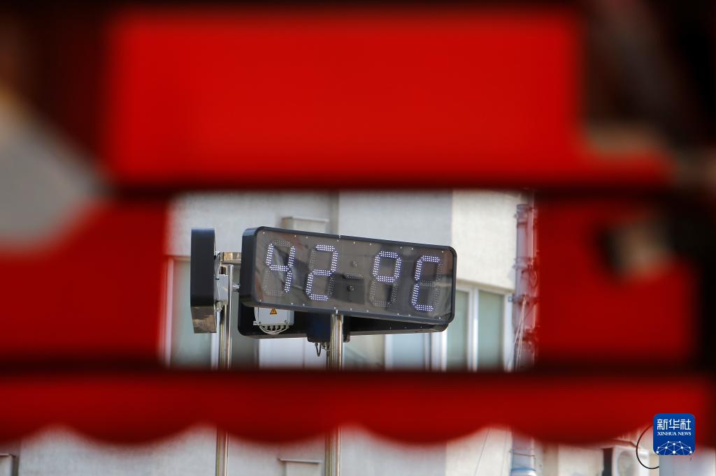 7月25日,罗马尼亚布加勒斯特街头的一个温度指示牌显示气温达到42摄氏度。