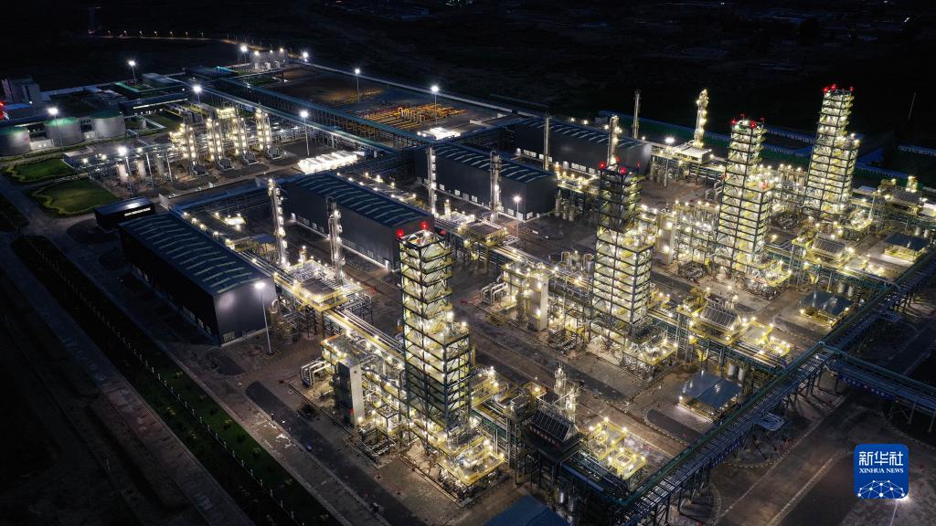 中国石油长庆油田上古天然气处理总厂夜景(7月27日摄,无人机照片)。