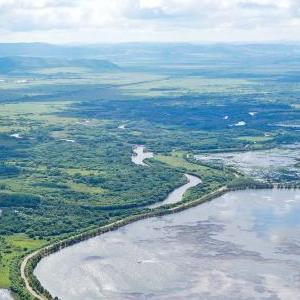 夏日时节,位于内蒙古自治区呼伦贝尔市牙克石市的免渡河国家湿地公园郁郁葱葱,景色优美。