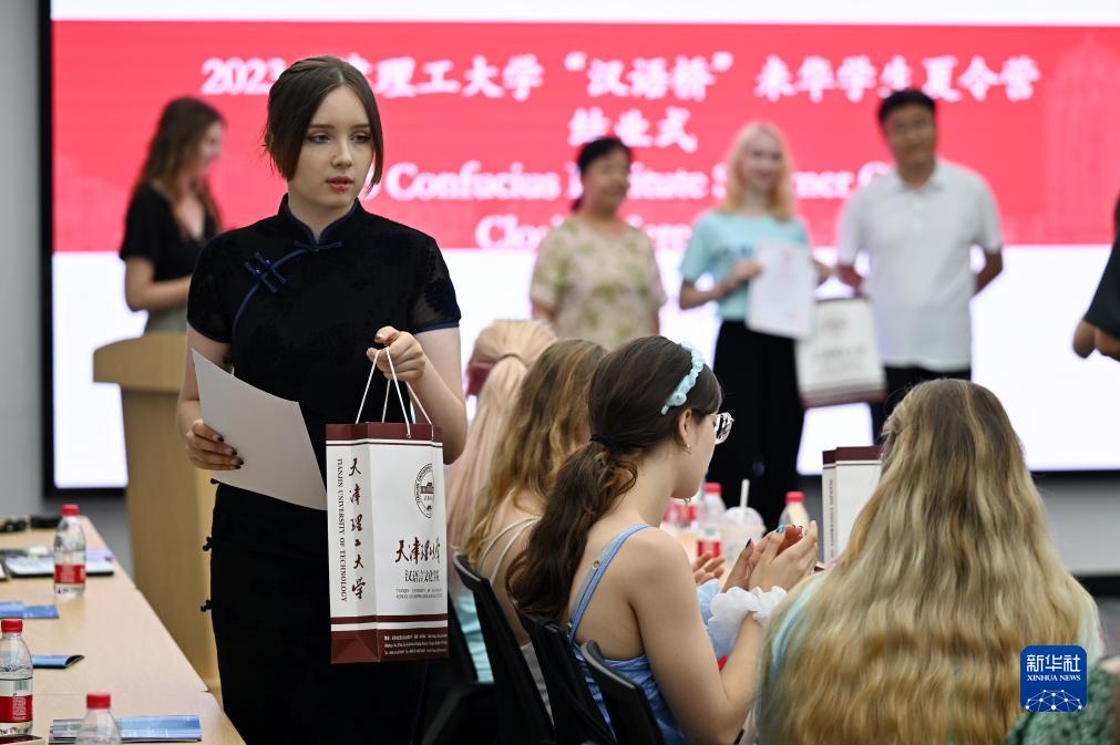 当日,2023天津理工大学“汉语桥”来华学生夏令营结业式在天津理工大学办公楼举行。据了解,参加此次夏令营的20多名学生和老师,来自波兰密茨凯维奇大学和维斯瓦大学,在为期14天的时间里,他们通过学习中文课程和参加文化体验、参观游览等活动,领略中国文化魅力。
