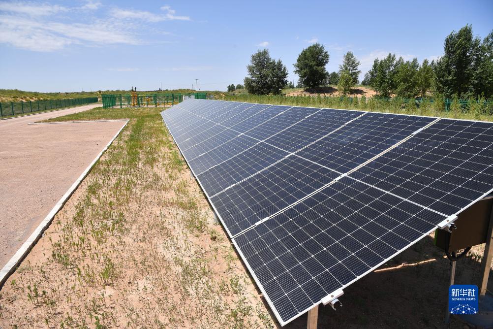 这是中国石油长庆油田苏里格气田第三采气厂作业二区,桃-2-4-18绿色零碳智能井组(7月24日摄)。该井组以光伏发电为依托,实现智能监控、智能柱塞、智能间开、智能注剂为一体的零碳智能井场。