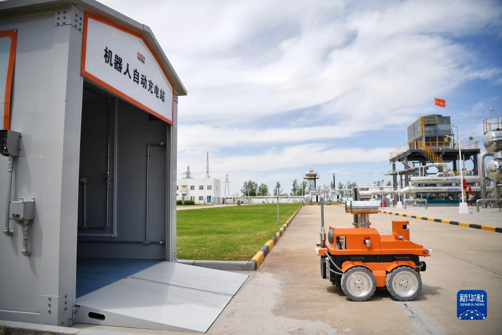 智能巡检机器人在中国石油长庆油田第三采气厂苏里格天然气第六处理厂进行日常巡检(7月23日摄)。