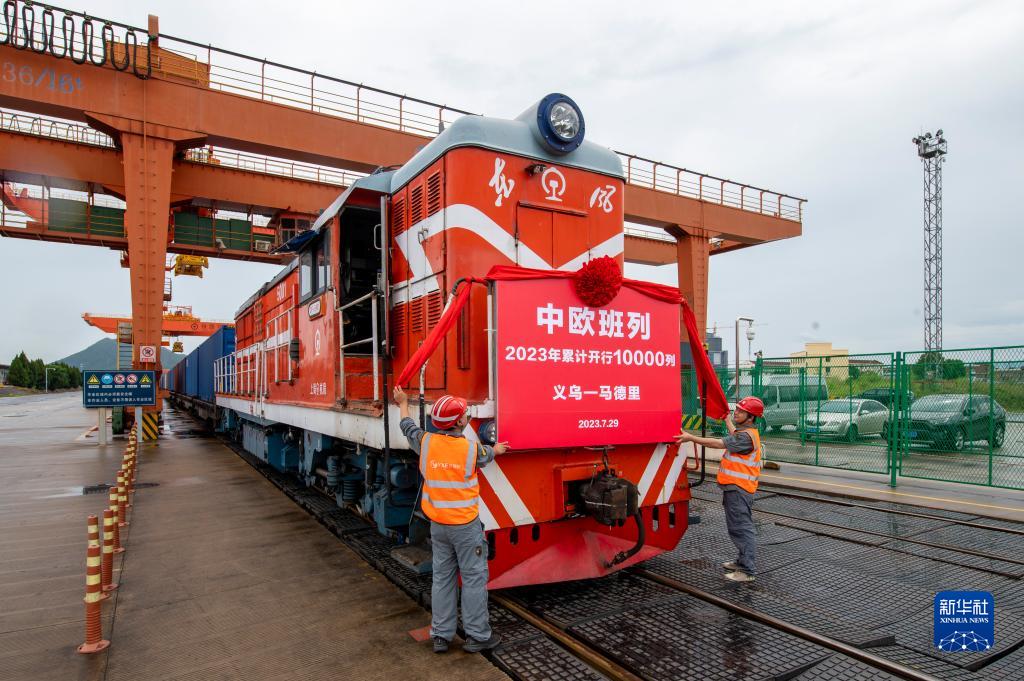 7月29日10时18分,随着X8020次中欧班列从义乌西站缓缓开出,前往西班牙马德里,今年中欧班列累计开行已达10000列,较去年提前22天破万列,发送货物108.3万标准箱,同比增长27%。