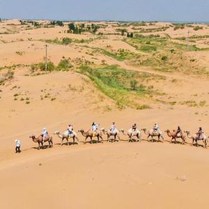 盛夏时节,内蒙古鄂尔多斯市达拉特旗境内的库布其沙漠游客络绎不绝,沙漠旅游一派火热。游客们在饱览大漠美景的同时,也体验骑骆驼、滑沙等项目的独特魅力。