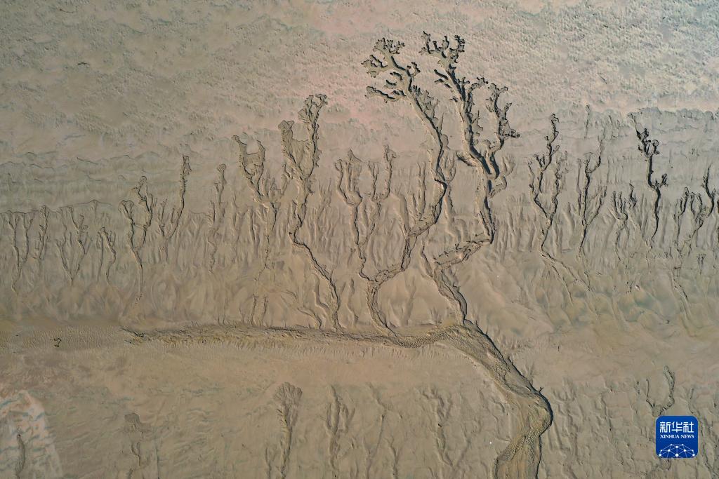 近日,随着黄河调水调沙结束,黄河河南省开封市黑岗口险工段水位下降。河床被水流冲刷过后呈现出纵横交错的“脉络”。