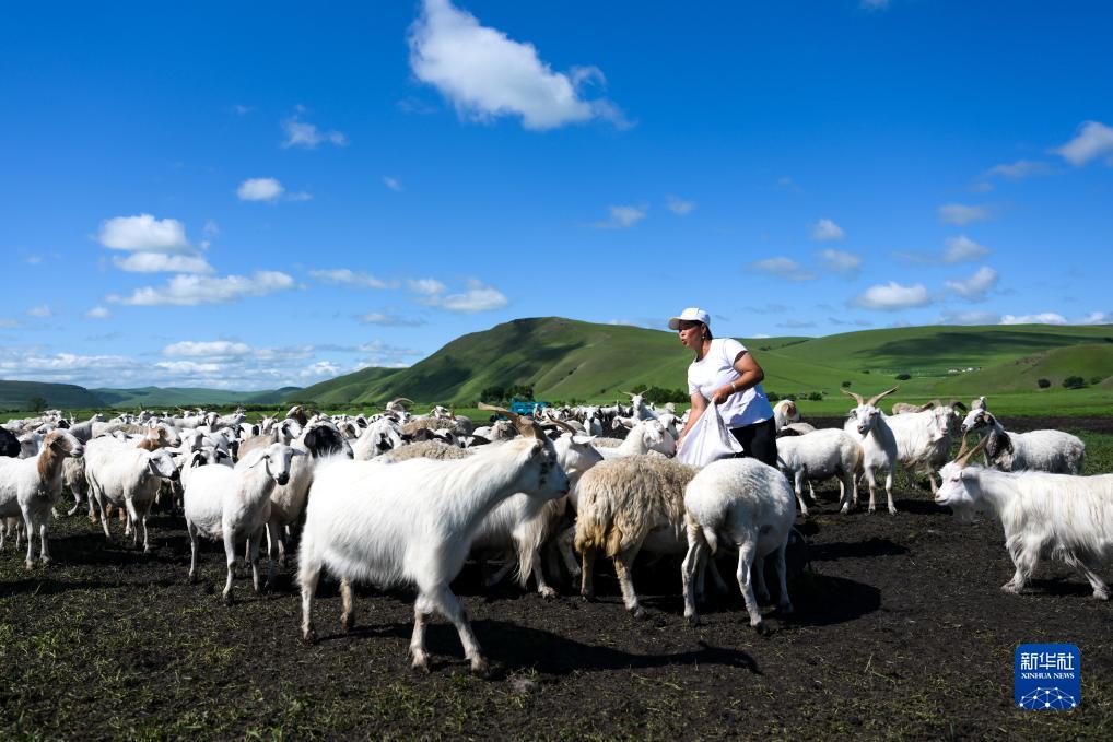 7月24日,白萨仁在给羊喂盐。
