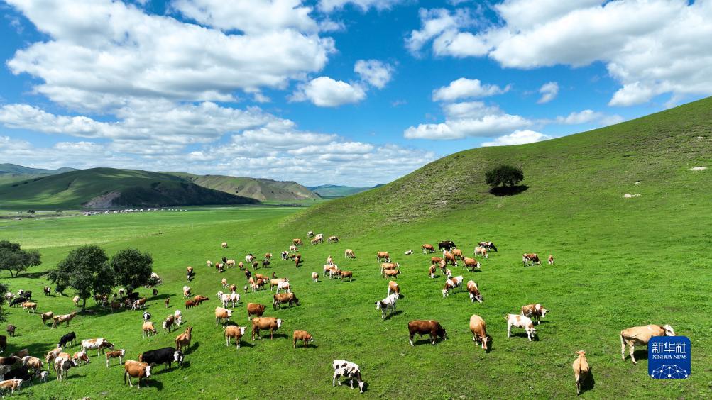 这是苏道家庭牧场上的牛群(无人机照片,7月24日摄)。