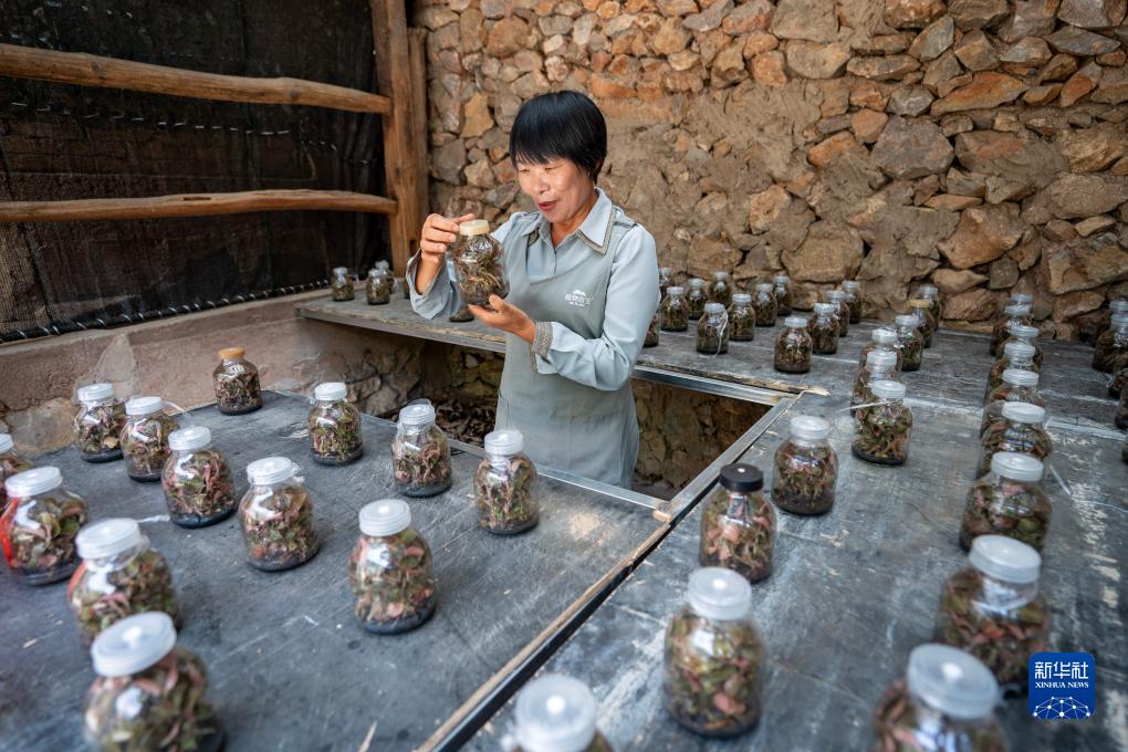 谢成芬在家中搭建的大棚内查看人工培养的金线莲幼苗(7月27日摄)。新华社记者 陈欣波 摄