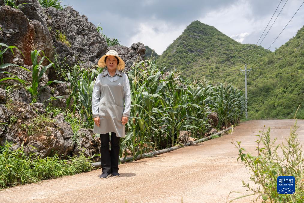 谢成芬站在自己和村民一起修好的出村公路上(7月27日摄)。新华社记者 费茂华 摄