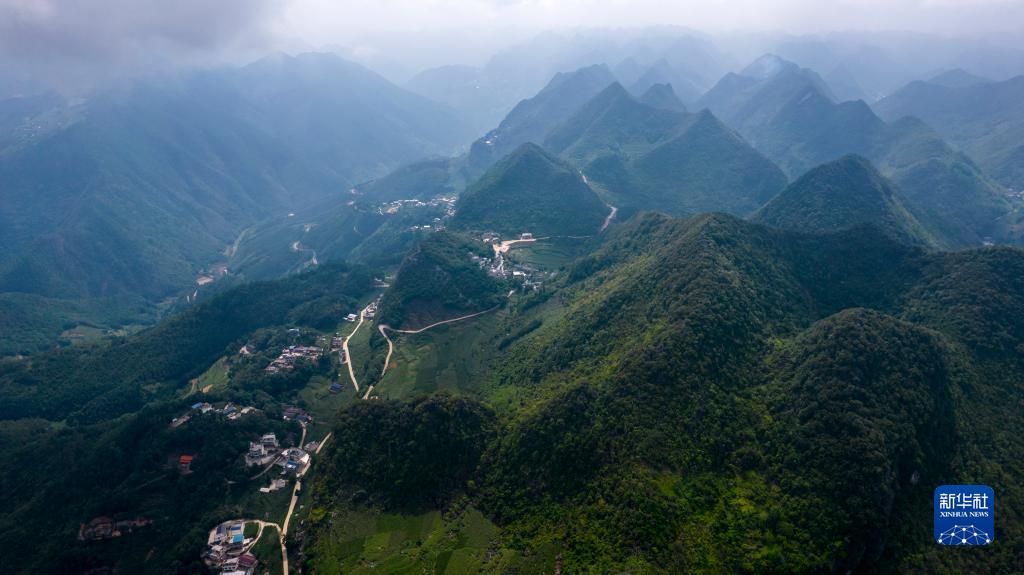 这是无人机视角下的岩头村,位于画面中间的山体中(无人机照片,7月27日摄)。新华社记者 杨植森 摄