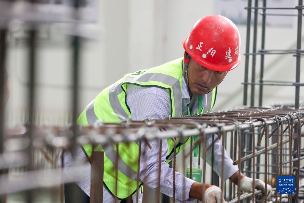 7月29日,在第二届新疆建筑工匠技能大赛决赛现场,参赛选手在进行钢筋工项目竞赛。