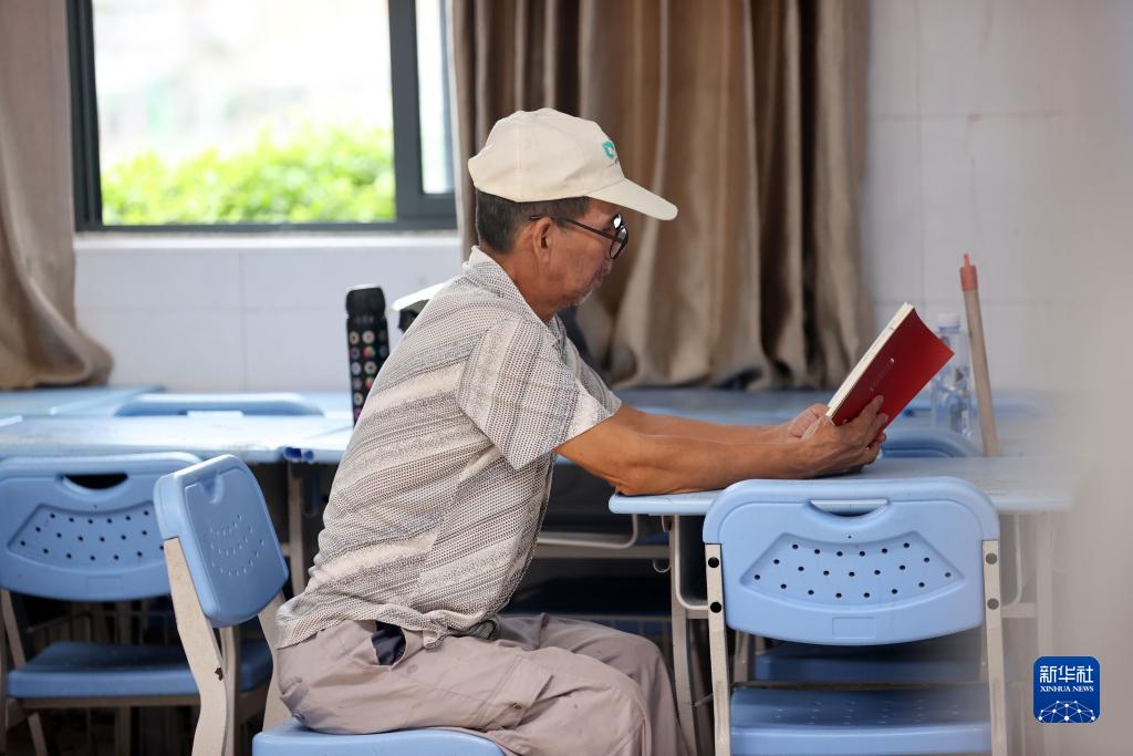 7月29日,一名被转移安置的居民在福建省厦门市新圩学校临时安置点看书。