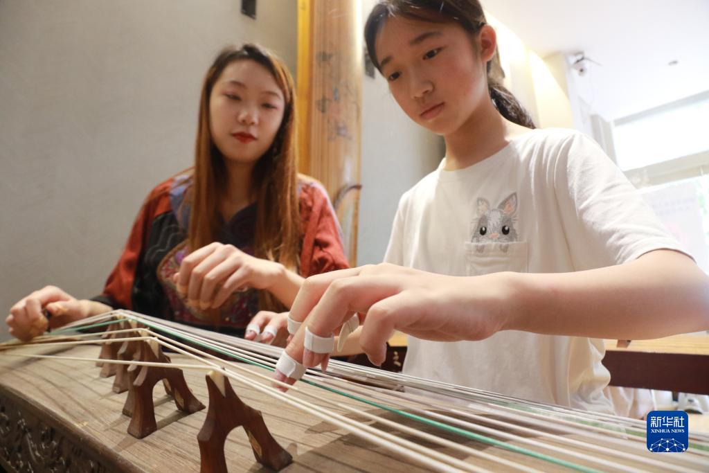 7月29日,在山东省高密市一家艺术培训机构,学生练习古筝。