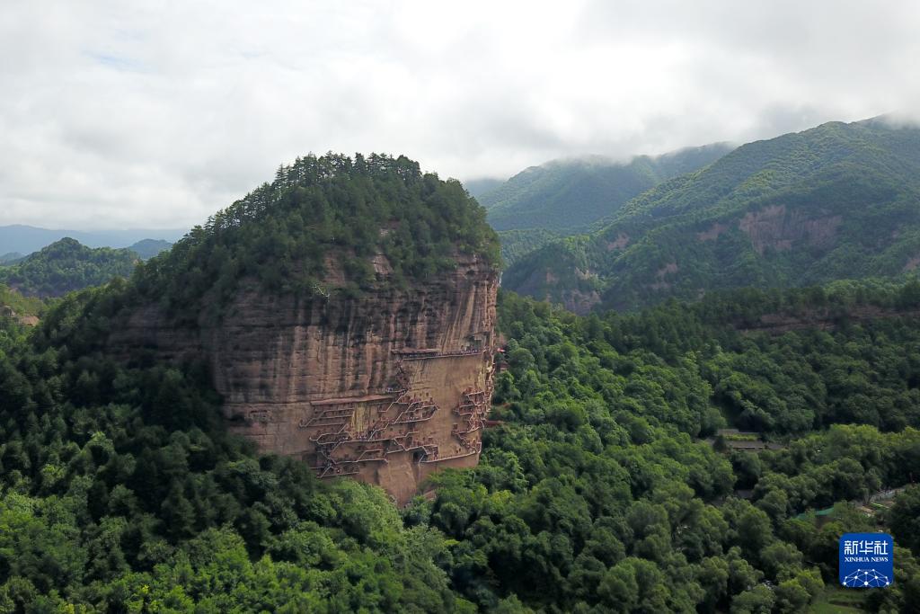 这是7月29日拍摄的麦积山石窟全景(无人机照片)。