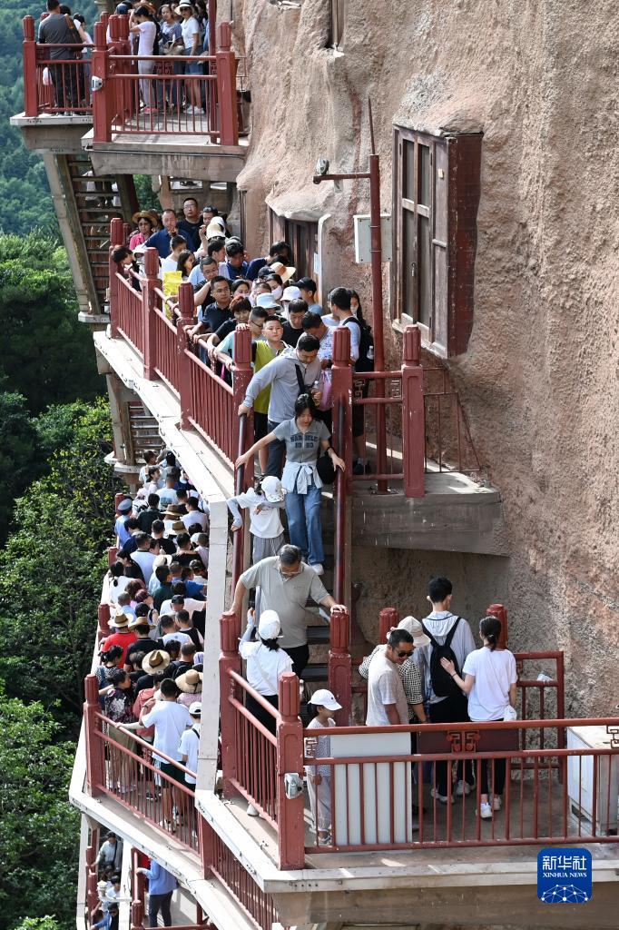 进入暑期,地处甘肃省天水市麦积区的麦积山石窟迎来旅游高峰。为保障游客与文物安全,麦积山石窟艺术研究所优化参观路线,从7月29日起至8月25日间开启路线陡峭的应急1号线和路线平缓的应急2号线两条参观线路供游客选择,以此提升游客体验。麦积山石窟是“中国四大石窟”之一,因其形似麦垛而得名,也是世界文化遗产“丝绸之路:长安-天山廊道的路网”的遗产点之一。