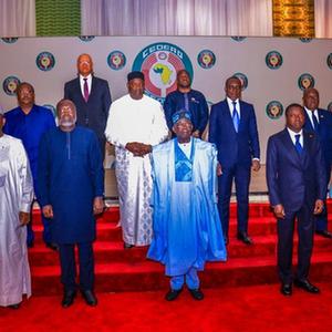 7月30日,在尼日利亚首都阿布贾,参加西非国家经济共同体(西共体)紧急会议的西非国家领导人合影。