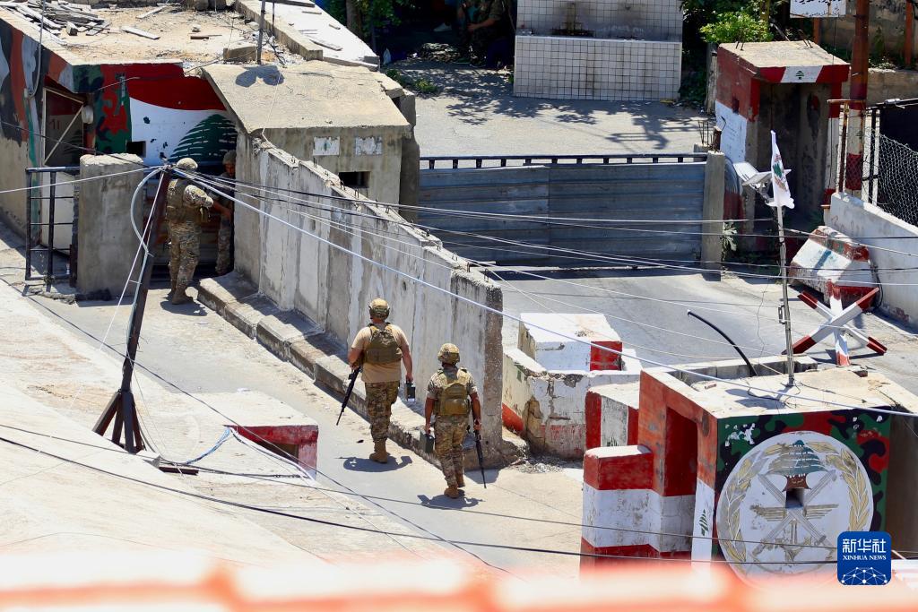 7月30日,黎巴嫩士兵在西顿市附近的艾因·哈勒瓦难民营出入口警戒。