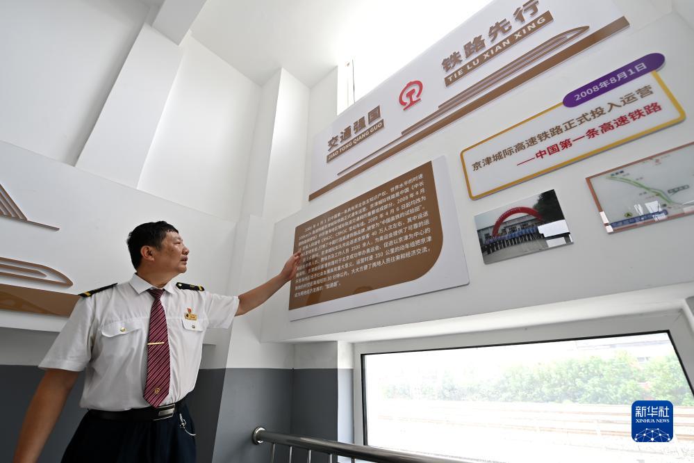 徐伟在天津机务段动车组运用车间查看京津城际历史介绍(7月26日摄)。