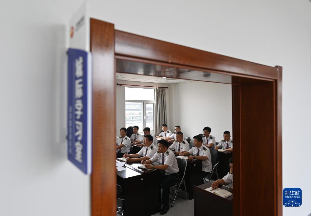 徐伟在天津机务段动车组运用车间参加学习会(7月26日摄)。