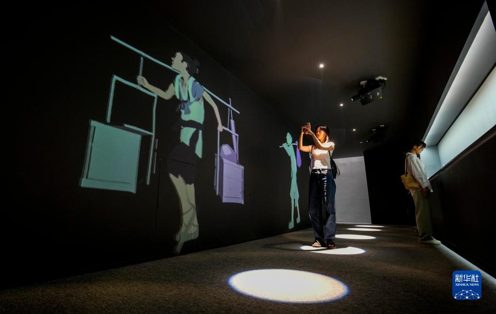 7月31日,两名游客在《画游清明上河――故宫沉浸艺术展》一个利用数字技术活化《清明上河图》的展区参观游览。