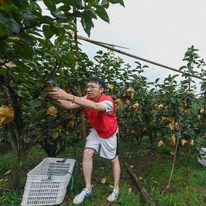 8月1日,党员志愿者在湖州市东林镇三合村的蜜梨种植基地帮助种植户抢收蜜梨。