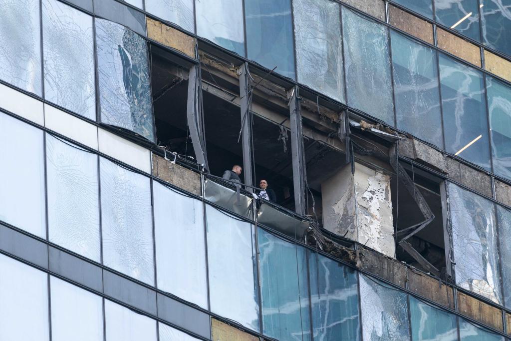 这是8月1日在俄罗斯首都莫斯科拍摄的受损建筑。