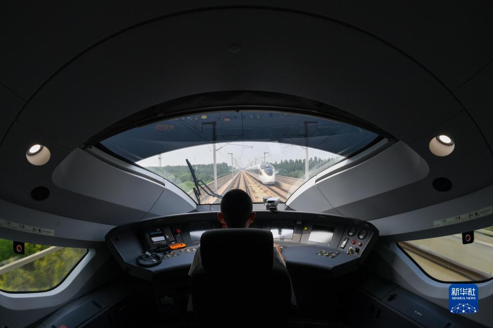7月26日,一位驾驶员在驾驶京津城际列车。