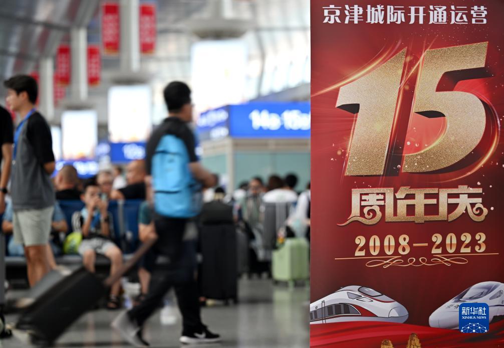 8月1日,旅客在天津站准备搭乘京津城际列车出行。