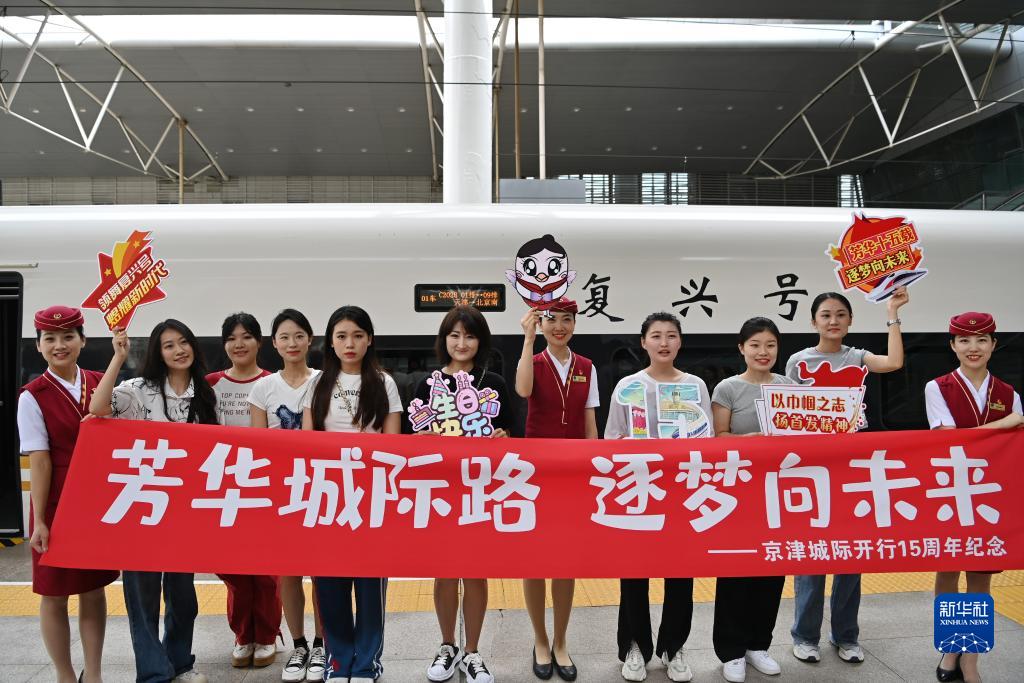 8月1日拍摄的在天津站举行的京津城际开行15周年纪念活动一景。