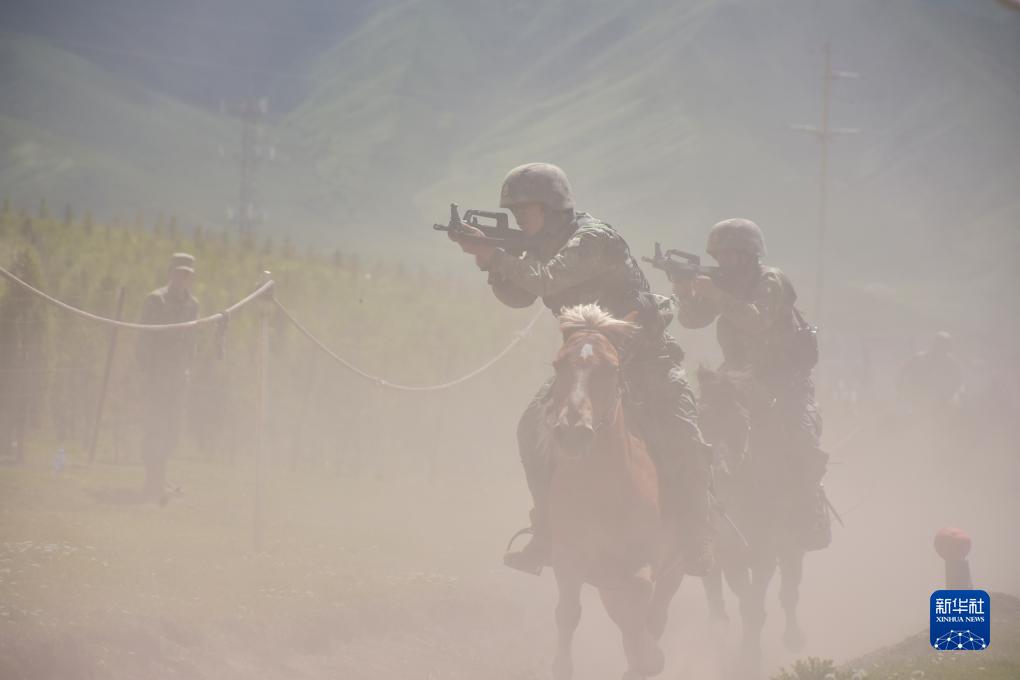 驻守在青藏高原腹地的陆军第76集团军某骑兵连展开多项实战化课目训练。这是官兵们在乘马射击(7月30日摄)。
