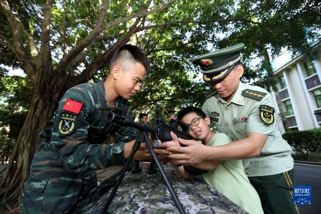 武警海南总队三亚支队开展“军嫂萌娃进军营”主题活动,邀请百余名军属走进营区“零距离”体验(7月30日摄)。