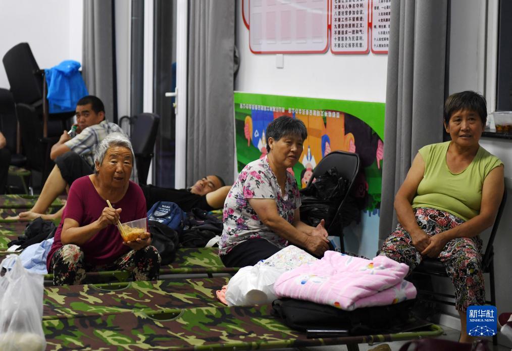 8月1日,村民在北京市房山区青龙湖镇上万村一处临时安置点休息。