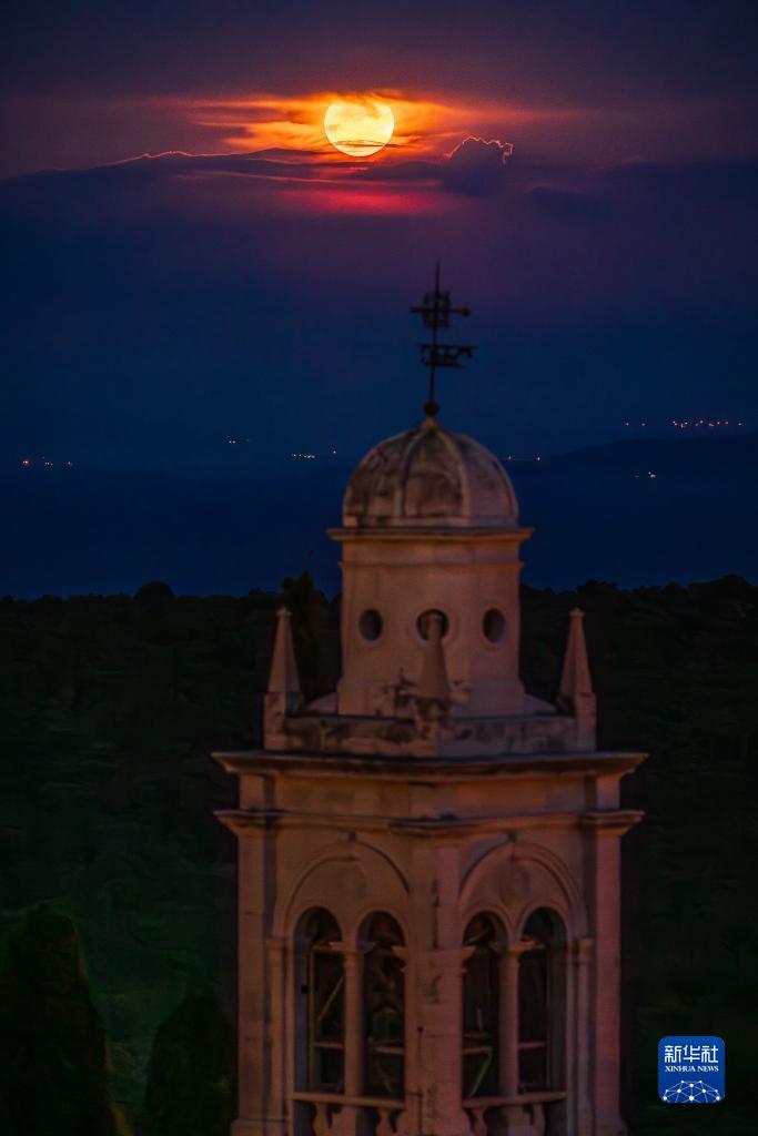 8月1日晚,一轮满月现身克罗地亚布拉奇岛上空。