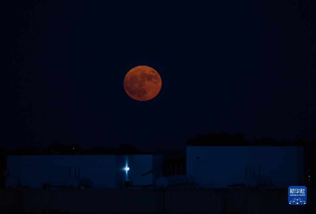 8月1日晚,在塞浦路斯首都尼科西亚,一轮满月从天边升起。