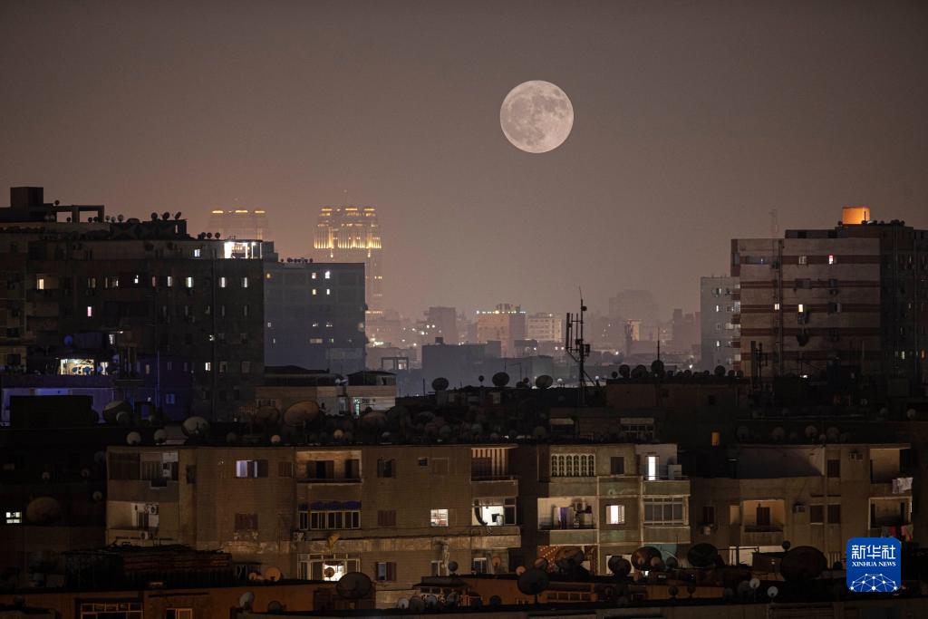 这是8月1日晚在埃及开罗拍摄的满月。