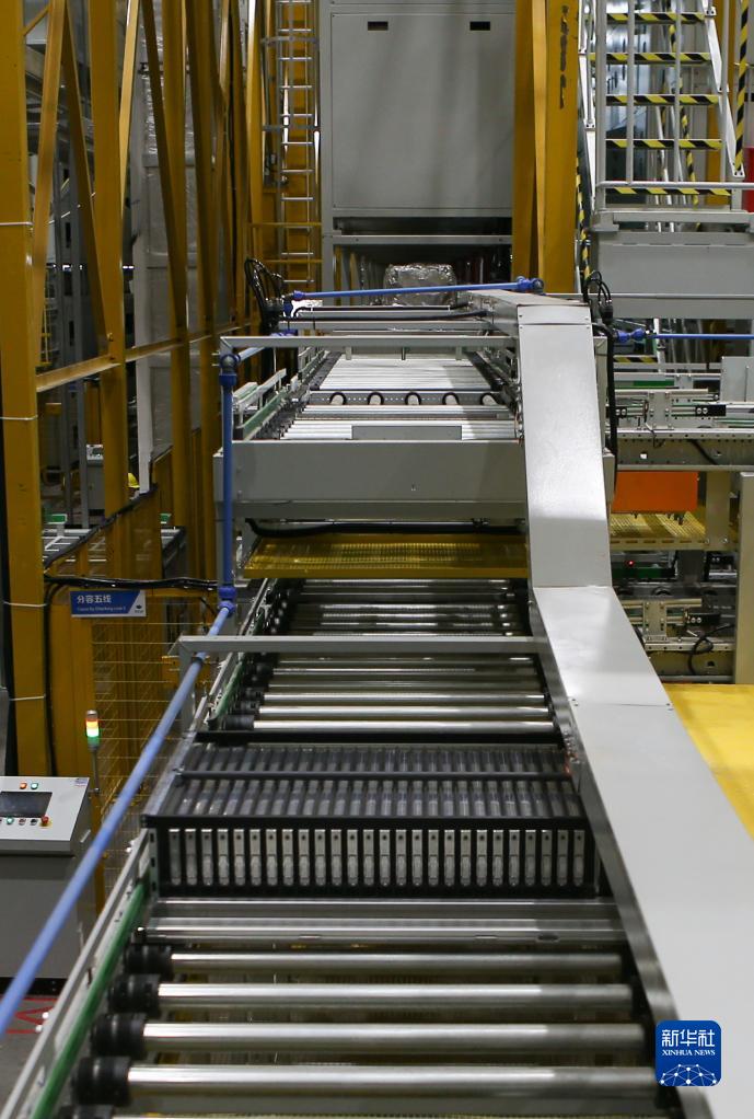 这是8月1日在襄阳比亚迪产业园拍摄的动力电池检测流水线。