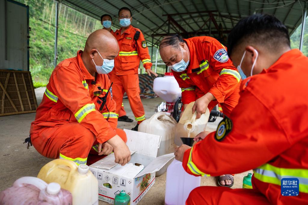 8月2日,在桃江县桃花江国有林场,护林员在准备治理竹蝗的药水。