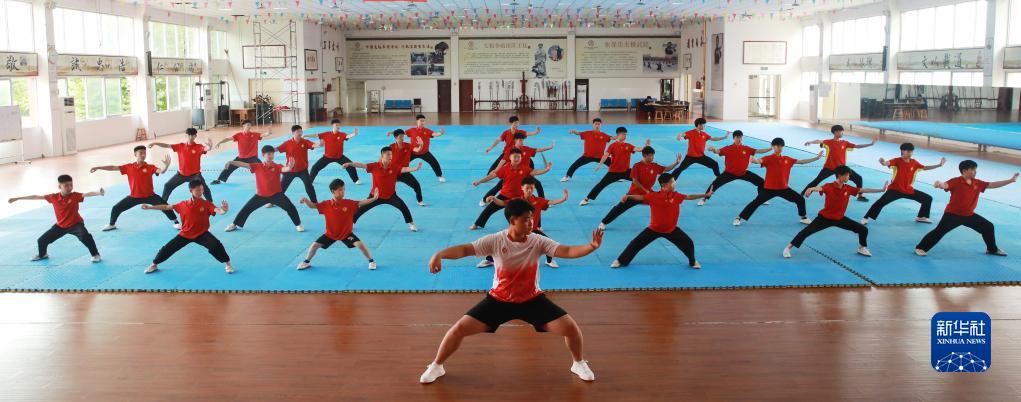 8月1日,学生在河南省焦作市温县一家太极拳武校习练太极拳。
