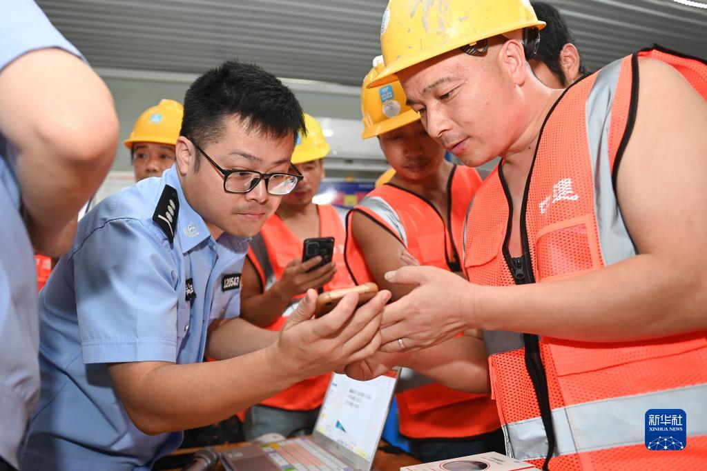 当日,杭州市人民警察学校联合辖区派出所民警来到中建三局富阳银湖生物信息产业园项目工地,以案例教学的形式,向外来务工人员讲解防范电信网络诈骗知识,提升劳动者安全防范意识。