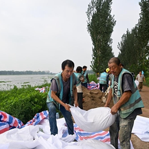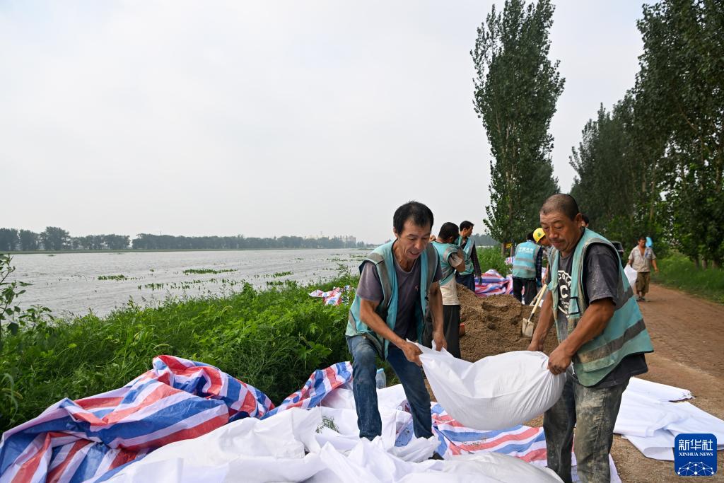 当日,来自中建、中交等多个单位的工人和静海区当地村民共千余人忙碌在大清河天津市静海段南北两岸,持续进行两岸堤坝加高加固工作,以应对大清河河道内不断增长的上游来水。