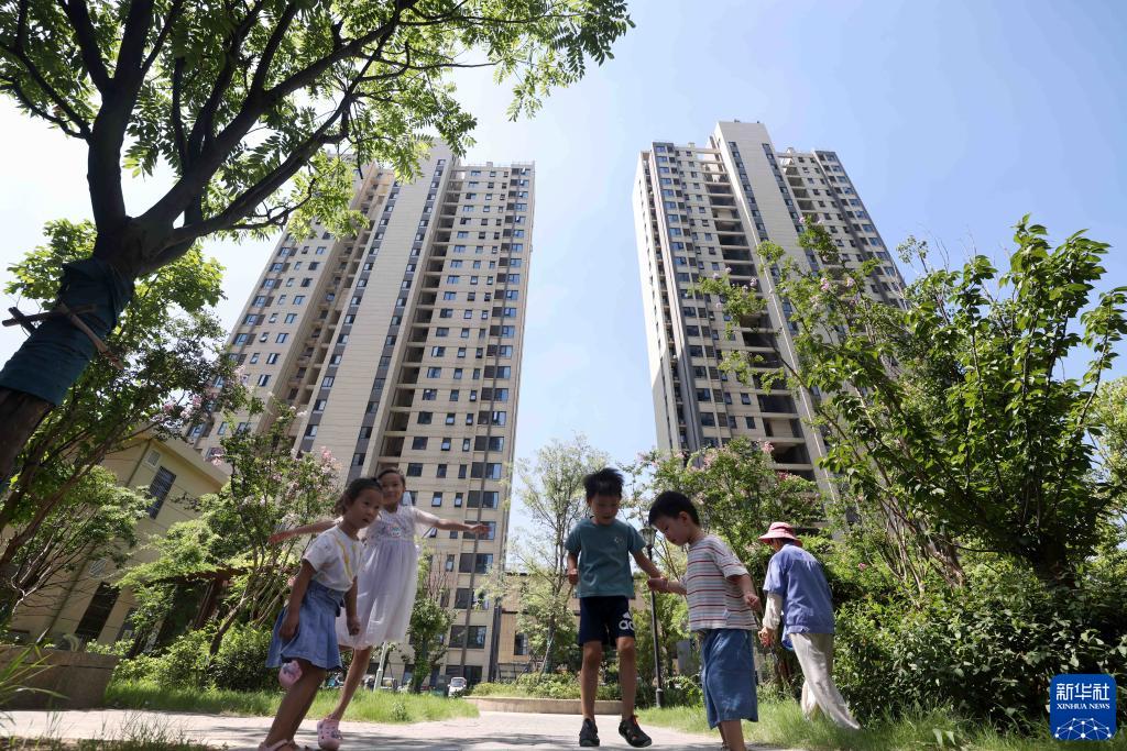 8月3日,在改造后的合肥市瑶海区钟油坊大郢城中村改造项目,孩子在小区里玩耍。