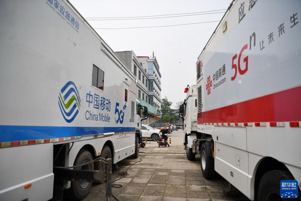 8月3日,应急通讯车辆停靠在涿州市第三中学安置点外。