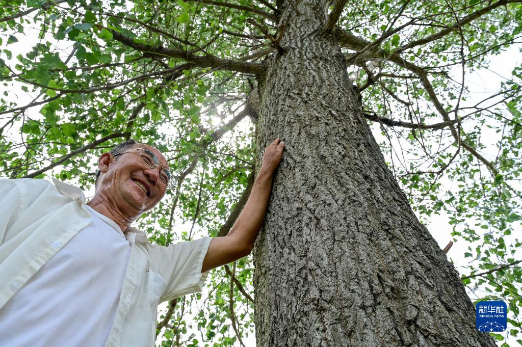 8月2日,百顺抚摸他种的第一棵树。
