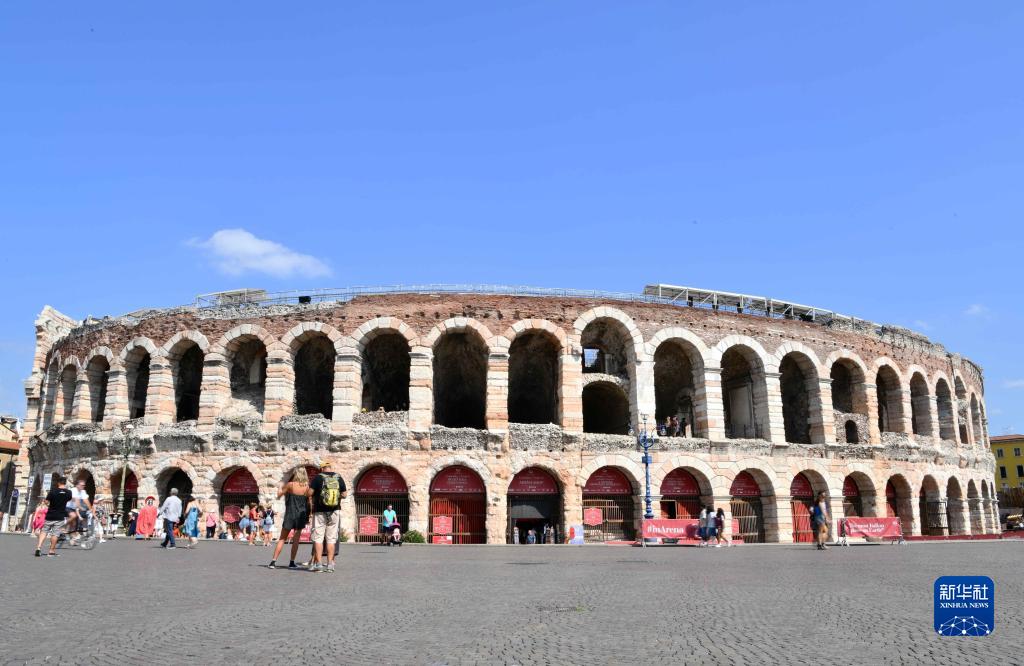 8月2日,游客游览意大利维罗纳圆形竞技场。