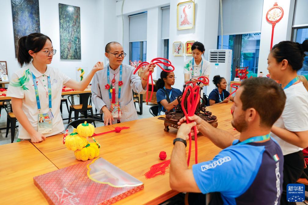 成都大运村里设置了包括皮影、剪纸、刺绣、草编等非遗项目在内的中国文化体验项目,吸引众多代表团成员前来参与。在这里,各代表团成员可以更加切近地感受、了解中国非遗文化的魅力。