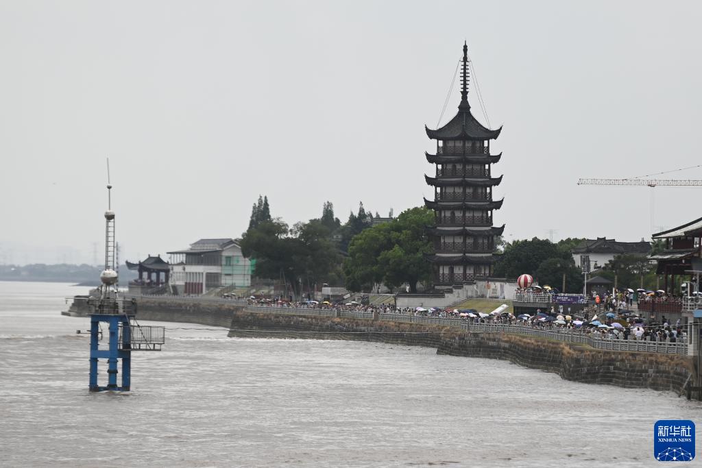 当日是农历六月十八,号称“天下第一潮”的钱塘江大潮在海宁盐官呈现“一线潮”奇观,吸引众多游客观赏。