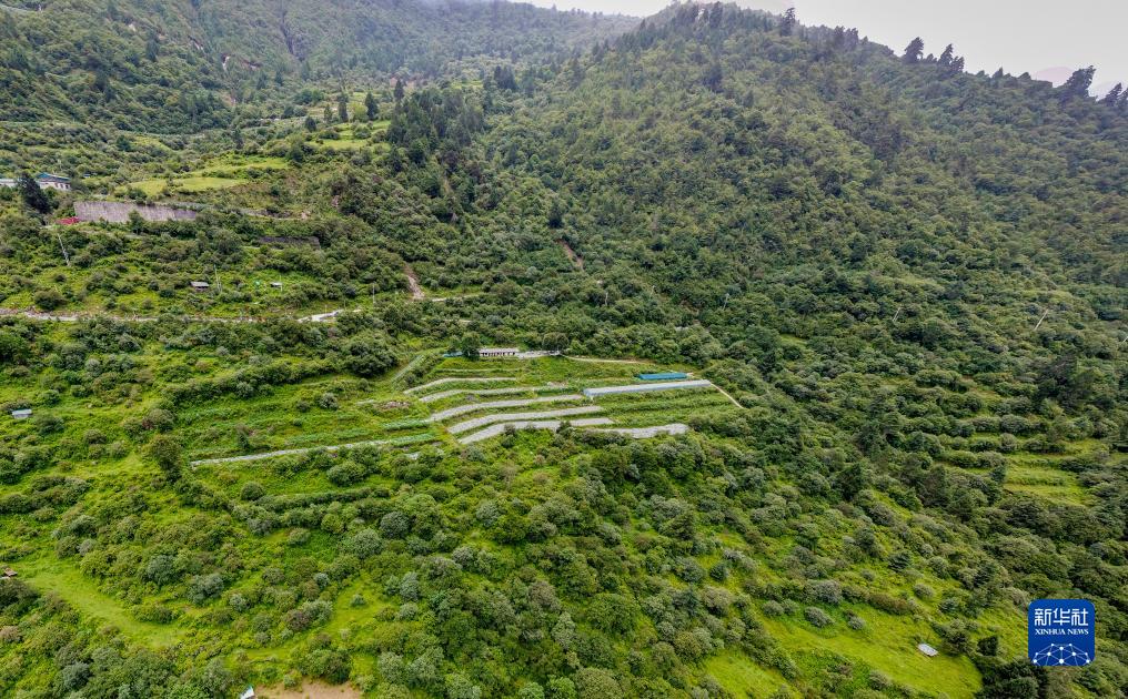 这是错那市贡日门巴民族乡斯木村的莓茶种植试验田(无人机照片,7月28日摄)。