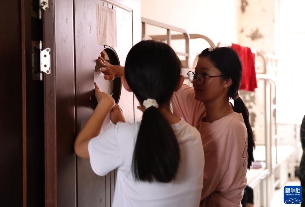 8月4日,被转移的村民在吉林省舒兰市第二十六中学安置点内收拾房间。