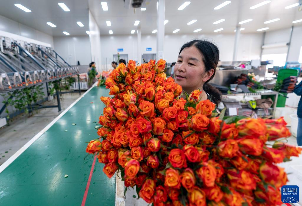 在云天化晋宁花卉产业现代化示范园内,一名花农在搬运分拣好的鲜花(7月12日摄)。新华社记者 陈欣波 摄