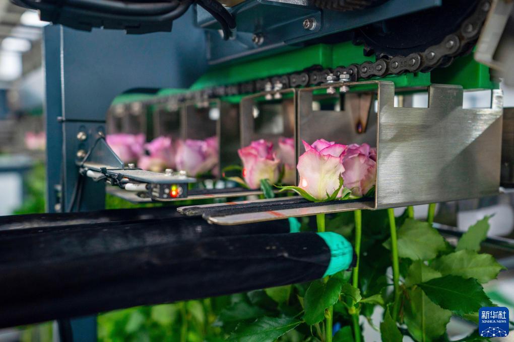 这是云天化晋宁花卉产业现代化示范园内的鲜花包装流水线(7月12日摄)。新华社记者 陈欣波 摄